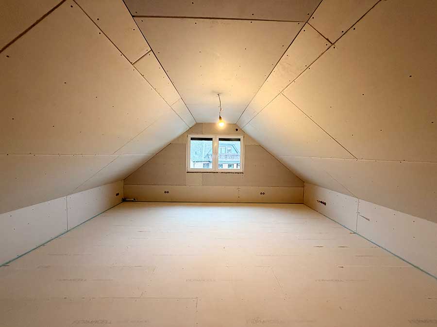 Die vorgefertigten Bauteile, Gipskartonplatten und Ständerwerk, sind kostengünstig und ermöglichen einen schnellen Einbau. Am Ende können die geglätteten Oberflächen gemalt oder tapeziert werden.